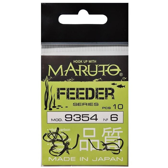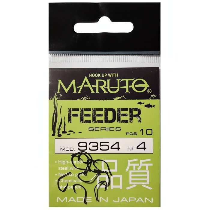 Крючки Maruto серия Feeder 9354 Bn - рыболовные кованые фидерные крючки от известной японской компании Maruto. Самоподсекающие крючки фидерной серии 9354 имеют узкую направленность, предназначены для ловли на фидерную, карповую и донную снасть. Благодаря загнутого внутрь жала крючка, для поимки рыбы не требуется подсечка. Размерный ряд серии 9354 позволяет подобрать крючки как для червя, так и для опарыша и растительных насадок. При обзоре характеристик и тестов, самоподсекающие крючки Maruto серия Feeder 9354 Bn получили положительные отзывы и рейтинги экспертов по фидерной и карповой ловли. Продается упаковками по 5-10 штук в зависимости от номера крючка, серия выпускается в цвете Bn. Цена указана за упаковку.
