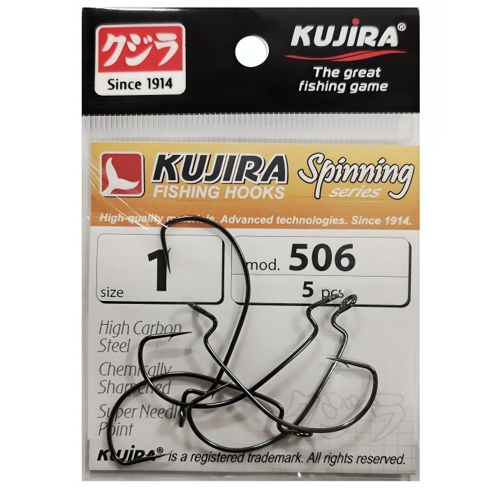 Крючки Kujira Spinning серия 506 Bn - кованые офсетные крючки предназначенные для оснащения рыболовных силиконовых приманок, могут сочетаться с разборными чебурашками для утяжеления снасти, а так же для оснащения неогруженной резины. Жало крючка имеет химическую заточку, что обеспечивает ещё лучшую засекаемость хищника. При обзоре характеристик и тестов, крючки Kujira Spinning серия 506 получили положительные отзывы и рейтинги экспертов по джиговой рыбной ловли. Продается упаковкой по 5 штук в цвете Bn, цена указана за упаковку.