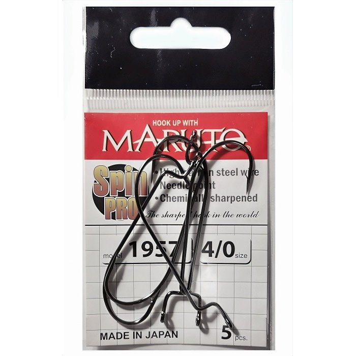 Крючки Maruto серия Spin Pro 1957 - кованые офсетные крючки с классическим загибом от японской компании Maruto. Крючки 1957 серии предназначены для оснащения рыболовных силиконовых приманок, могут сочетаться с разборными чебурашками для утяжеления снасти. Жало крючка имеет прямой, ровный выход. Крючки изготовлены из проволоки не подверженной ржавчине. При обзоре характеристик и тестов, офсетные крючки Maruto серия Spin Pro 1957 получили положительные отзывы и рейтинги экспертов по рыбной ловли. Продается упаковкой по 5 штук, цена указана за упаковку. Цвет Bn.