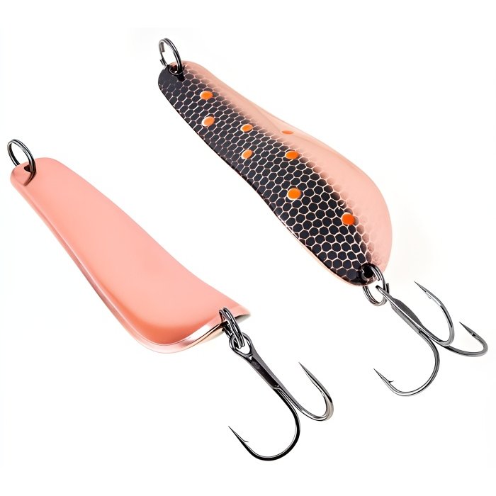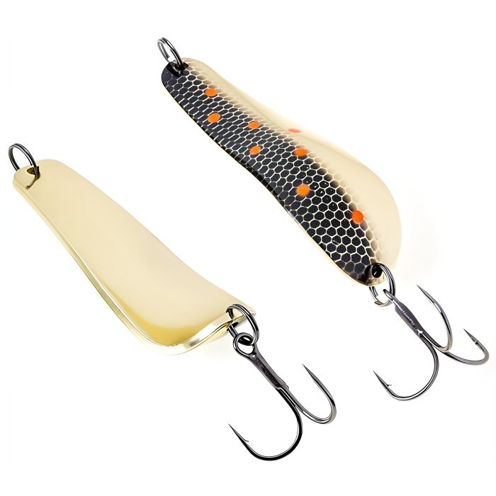 Блесна Akara Salmon Нельма 83/30 - колеблющаяся рыболовная приманка серии Нельма от компании Akara Fishing. Колеблющаяся блесна Akara Salmon Нельма пожалуй, одна из лучших колебалок для ловли лососёвых пород рыб. Благодаря специально разработанной и многократно испытанной форме, великолепно провоцирует хищника на атаку. Варианты различных весов и размеров, позволяют ловить ею как на сносе течением при боковых забросах, так и в ямах, но не с сильным течением. Благодаря своей форме, блесна обладает, мелкой высокочастотной игрой, меняющейся по амплитуде, в зависимости от размера и веса, что как раз так нравится лососёвым. Щука, окунь, судак и пассивный жерех, тоже не оставят данную приманку без внимания. Из-за особенностей прямой проводки, на лёгкие веса Akara Salmon, можно успешно ловить по мелководным перекатистым речкам и травянистым озёрам. При обзоре характеристик и тестов, колеблющаяся блесна Akara Salmon Нельма 83/30 получила положительные отзывы и рейтинги экспертов по рыбной ловли. Приманка выпускается в весах 19,24 и 30 гр.
