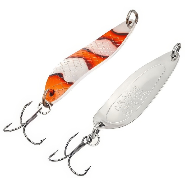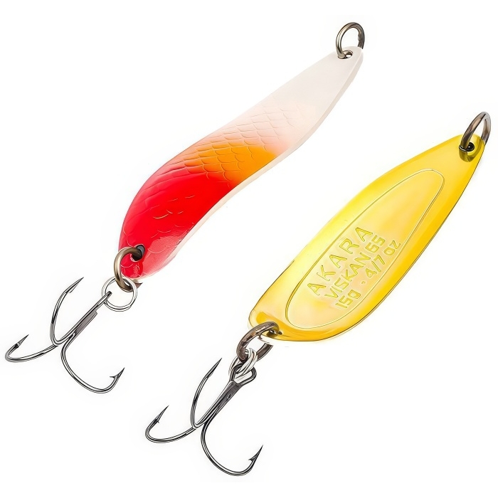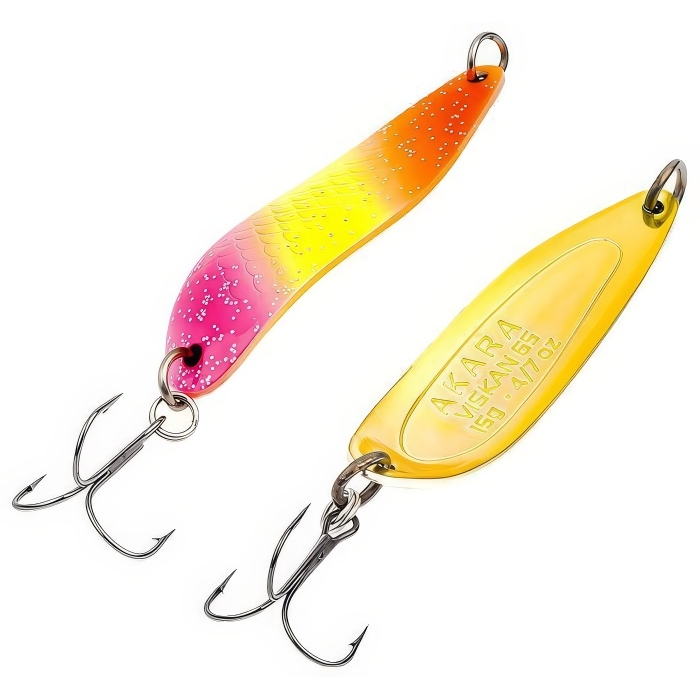 Блесна колебалка Akara Action Series Viskan 12 - классическая колеблющаяся приманка для ловли лососевых от компании Akara Fishing. Блесна Viskan размером в 65 мм., с оригинальной формой тела, предназначена для ловли практически любых хищников, таких как семга, кумжа, чавыча, сима и таймень, ловит как на стоячей воде, так и на бурлящих потоках горных рек. Благодаря форме блесна отлично держит струю, не сваливается и контролируется на всей проводке, при остановке быстро осыпается. Блесна Akara Action Series Viskan оснащена тройным крючком от компании Kujira, все кольца на блесне пропаяны для надежности при выводе трофеев. Большой выбор ярких расцветок позволит подобрать приманку под любые погодные условия и любую разновидность рыбы. Блесна обладает отличными лётными характеристиками, что позволит сделать точный заброс в сложных условиях. При обзоре характеристик и тестов, колеблющаяся блесна Akara Action Series Viskan 12 получила положительные отзывы и рейтинги экспертов по рыбной ловли. Приманка выпускается в шести весовых категориях.