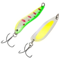 Блесна колебалка Akara Action Series Viskan 18 - классическая колеблющаяся приманка для ловли лососевых от компании Akara Fishing. Блесна Viskan размером в 65 мм., с оригинальной формой тела, предназначена для ловли практически любых хищников, таких как семга, кумжа, чавыча, сима и таймень, ловит как на стоячей воде, так и на бурлящих потоках горных рек. Благодаря форме блесна отлично держит струю, не сваливается и контролируется на всей проводке, при остановке быстро осыпается. Блесна Akara Action Series Viskan оснащена тройным крючком от компании Kujira, все кольца на блесне пропаяны для надежности при выводе трофеев. Большой выбор ярких расцветок позволит подобрать приманку под любые погодные условия и любую разновидность рыбы. Блесна обладает отличными лётными характеристиками, что позволит сделать точный заброс в сложных условиях. При обзоре характеристик и тестов, колеблющаяся блесна Akara Action Series Viskan 18 получила положительные отзывы и рейтинги экспертов по рыбной ловли. Приманка выпускается в семи весовых категориях.