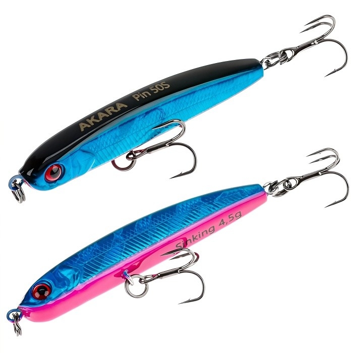 Воблер Akara Pin 50S - рыболовная кастинговая приманка стикбейт серии Pin, новинка 2023 года от компании Akara Fishing. Воблер типа Sinking (тонущий) имеет довольно обтекаемое тело без лопатки, напоминающее плотву. Обладает своеобразной собственной игрой, при рывковой (твичинговой) проводке приманка делает бросок в перед и в верх, после чего медленно осыпается задним ходом, что предотвращает перехлесты приманки, такая игра отлично провоцирую хищника на атаку. Лучше всего проявляет свои уловистые свойства на мелководных реках и озерах, неглубоких участках водохранилищ и крупных рек. Благодаря широкой гамме натуральных и провоцирующих расцветок эти приманки являются незаменимыми помощниками любого спиннингиста. Основные трофеи это щука и окунь, но и другие хищные не смогут устоять пред соблазнительной игрой приманки. Воблер Akara Pin 50S оснащен системой дальнего заброса и высокочастотной шумовой камерой. При обзоре характеристик и тестов, воблер Akara Pin 50S получил положительные отзывы и рейтинги экспертов по рыбной ловли. Крючки из высокоуглеродистой стали, тип плавучести – плавающий (Sinking).