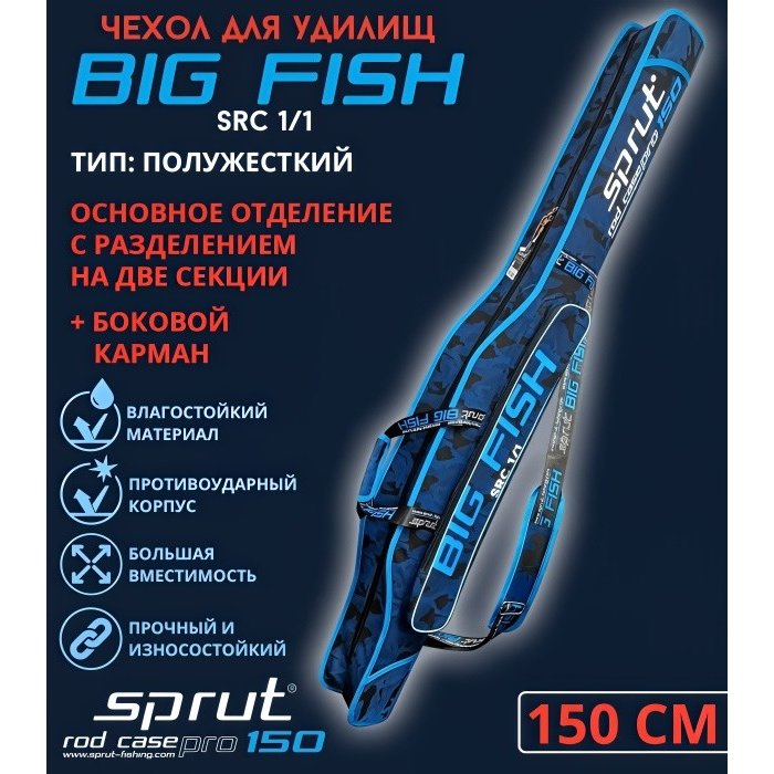 Чехол Sprut Rod Case Pro 150 Big Fish (SRC 1/1) - чехол для удилищ с катушками Sprut "Big Fish" -SRC 1/1 представляет собой полужесткую модель, которая обеспечивает надежную защиту ваших рыболовных удилищ. Основное отделение разделено на две секции, что позволяет удобно разместить различные типы удилищ. Кроме того, имеется боковой карман для хранения дополнительных аксессуаров. Чехол изготовлен из влагостойкого материала, что защищает содержимое от воды и неблагоприятных погодных условий. Фурнитура отличается высокой надежностью, что гарантирует долговечность изделия. Регулируемый плечевой ремень позволяет удобно носить чехол, а мягкие ручки обеспечивают комфорт при переноске чехла. При обзоре характеристик и тестов, чехол Sprut Rod Case Pro 150 получил положительные отзывы и рейтинги экспертов по рыбной ловли.