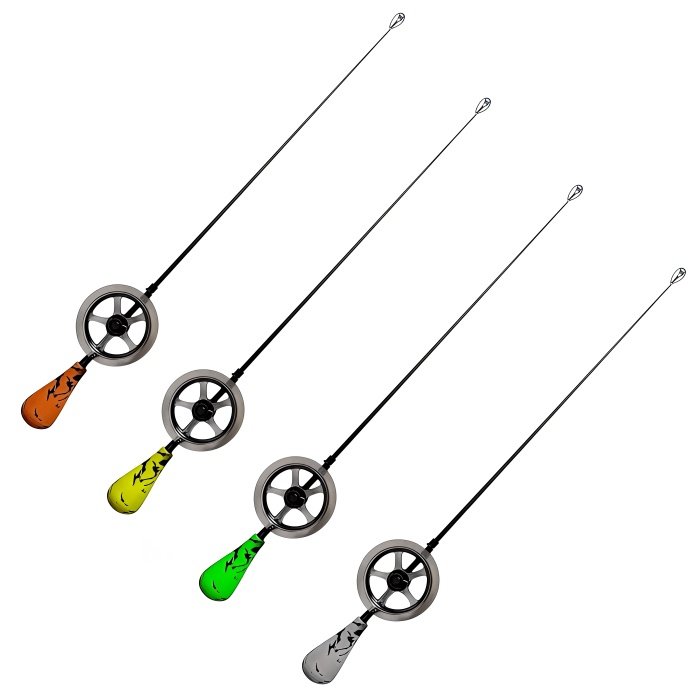Удочка зимняя для блеснения Akara Leader Elit L Gr-Ye с катушкой - новинка 2026 года, с карбоновым хлыстиком и тюльпаном, катушкой изготовленной из морозоустойчивого и ударопрочного пластика и удобной ручкой из прессованного пенопласта. Отличительная особенность данной модели заключается в установки катушки не посредственно на хлыстике удилища. Удочка Akara Leader Elit L, используется для ловли на блесну, раттлин и балансир. Катушка оснащена простым, затяжным фрикционном, который поможет при сбросе лески на большие глубины. Цветная ручка, овальной формы, прекрасно ложиться в руку и не холодит ее. На хлыстике имеется пластиковое пропускное кольцо и железная петля для фиксации приманки. При обзоре характеристик и тестов, зимняя блеснилка Akara Leader Elit L Gr-Ye получила положительные отзывы и рейтинги экспертов зимней ловле.