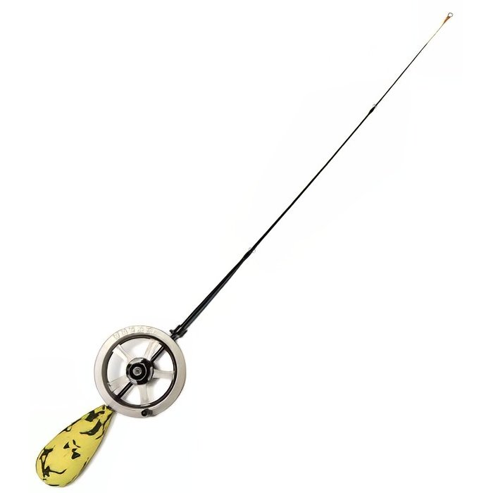 Удочка Akara Finezza Elite UL YE (0,7-2,8) - обновленная ультралайтовая безкивковая зимняя удочка с кольцами на стеклопластиковом хлысте предназначены для ловли на мормышку, чертика или небольшую блесну. Новинка 2025 года от компании Akara Fishing. Преимущество этой безкивковой удочки состоит в том, что ей не нужен кивок, в этом случае сигнализатором поклевки является сам хлыст, шестик выполненный из тончайшего стеклопластика и имеет яркий окрас, что позволяет увидеть любую поклевку, оснащен пропускными кольцами из нержавеющей проволоки. Катушка изготовлена из ударопрочного, морозоустойчивого пластика и имеет винтовой фрикцион для регулировки скольжения, так же для уменьшения веса крепиться на хлыстике, что добавляет чувствительности при поклевке. Рукоять изготовлен из прессованного пенопласта который не морозит руку и имеет минимальный вес, пропускное отверстие под леску имеет увеличенное отверстие для предотвращения замерзания. Подходит для ловли на любую оснастку с тестом до 2,8 грамм. При обзоре характеристик и тестов, зимняя безкивковая удочка Akara Finezza Elite UL получила положительные отзывы и рейтинги экспертов по рыбной ловли. Выпускается Finezza Elite с тестом 0,7-2,8 и 1-3,6.