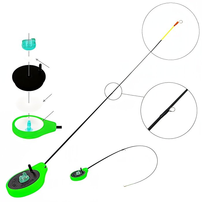 Удочка зимняя Akara Finezza UL (0,7-2,8) Green - ультралайтовая безкивковая балалайка с кольцами на стеклопластиковом хлысте предназначены для ловли на мормышку, чертика или небольшую блесну. Преимущество этой безкивковой удочки состоит в том, что ей не нужен кивок, в этом случае сигнализатором поклевки является сам хлыст, шестик выполненный из тончайшего стеклопластика и имеет яркий окрас, что позволяет увидеть любую поклевку, оснащен пропускными кольцами из нержавеющей проволоки. Катушка изготовлена из ударопрочного, морозоустойчивого пластика и имеет силиконовые шайбы для лучшего скольжения. Корпус изготовлен из прессованного пенопласта который не морозит руку и имеет минимальный вес, пропускное отверстие под леску имеет вставку из кембрика предотвращая перетирание монофила. Отлично подходит для ловли на безмотыльную оснастку, а так же крупной рыбы. При обзоре характеристик и тестов, зимняя безкивковая удочка Akara Finezza UL Green получила положительные отзывы и рейтинги экспертов по рыбной ловли. Общая длина 35 см, длина хлыста 28,5 см.