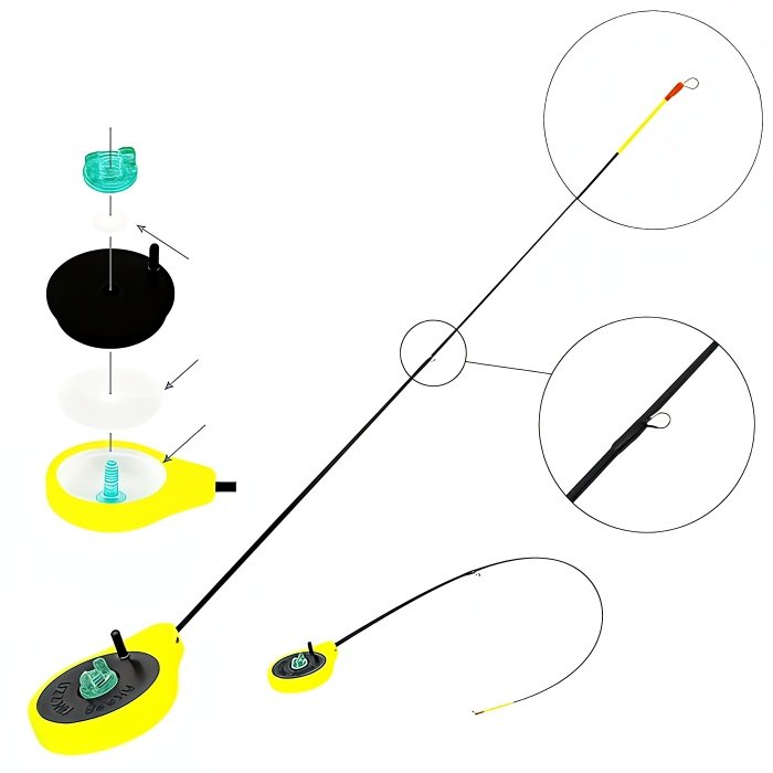 Удочка зимняя Akara Finezza UL Yellow (0,7-2,8) - рыболовная безкивковая балалайка ультралайт, предназначены для ловли на мормышку, лидер продаж от компании Akara Fishing. Уникальность удочки Finezza в том, что ей не нужен кивок, её можно назвать безкивковая, так как здесь сигнализатором поклевки является сам хлыст, изготовлен он из тончайшего стеклопластика, сигнализационная часть более тонкая и быстрая, что позволяет активно играть приманкой и увидеть любую поклевку. Удочка Akara Finezza отлично подходит для ловли на безмотыльную оснастку. При обзоре характеристик и тестов, зимняя безкивковая удочка Akara Finezza UL Yellow получила положительные отзывы и рейтинги экспертов по рыбной ловли. Общая длина 35 см, длина хлыста 28,5 см.